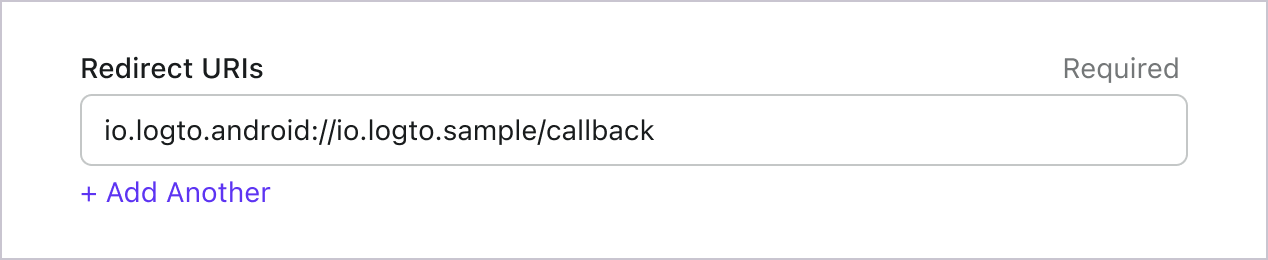 Assuming you treat io.logto.android as the custom LOGTO_REDIRECT_SCHEME, and io.logto.sample is your app package name, the Redirect URI should be io.logto.android://io.logto.sample/callback.